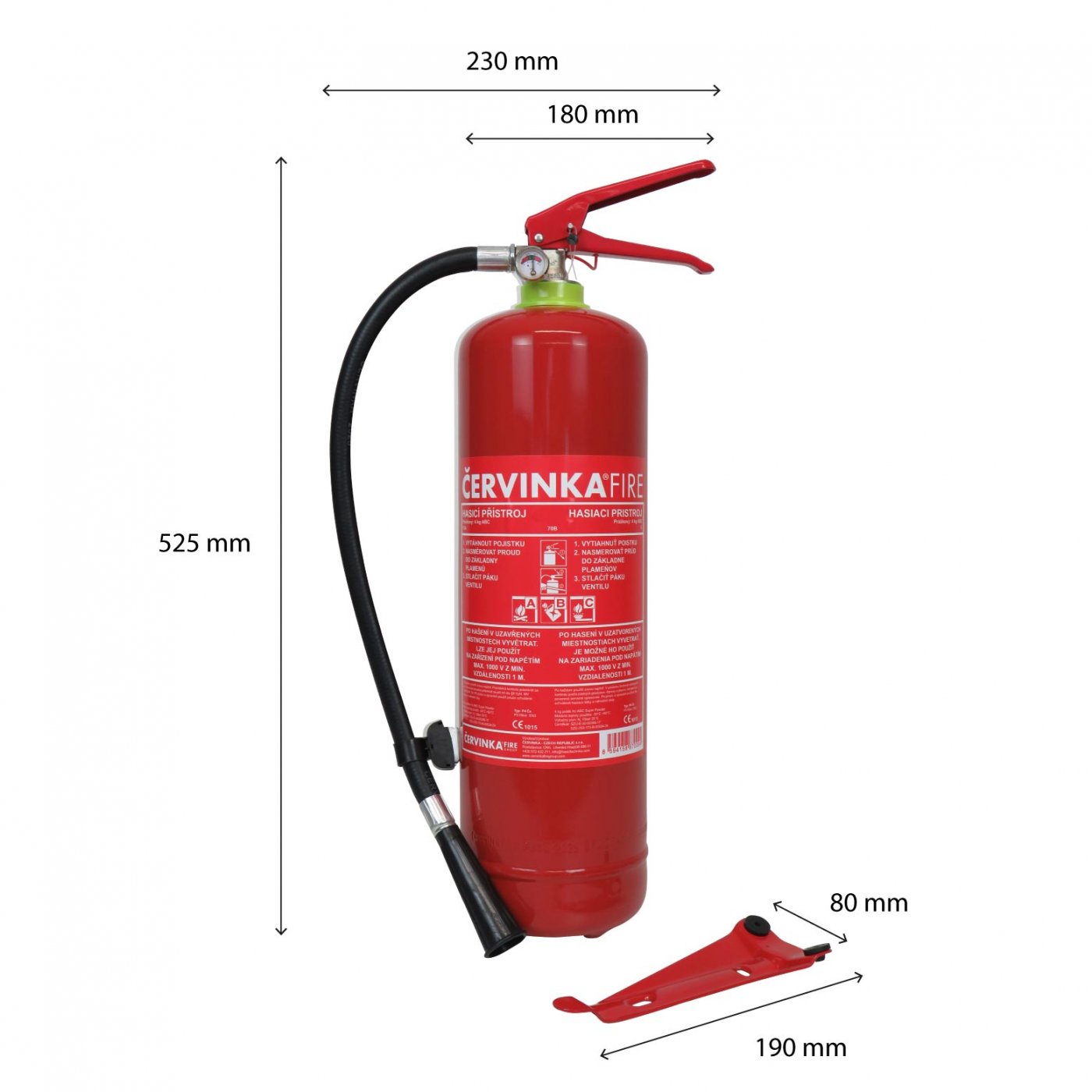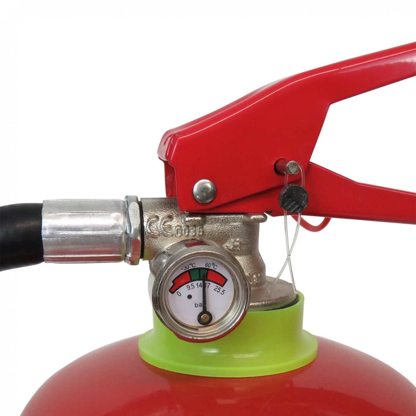 Wird vor allem in Wohnungen, Büros, Ferienhäusern oder als Ausrüstung in Lieferwagen verwendet. Er kann auch zum Löschen von elektrischen Geräten mit einer Spannung von bis zu 1000 V aus einer Mindestentfernung von 1 m verwendet werden. Er wird mit einer Standard-Wandhalterung geliefert. Das Gerät steht unter konstantem Druck und ist nach Gebrauch nachfüllbar. Der Druck des Feuerlöschers ist auf dem am Ventil angebrachten Manometer sichtbar.