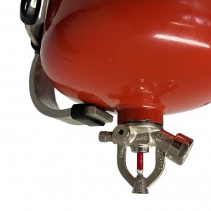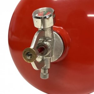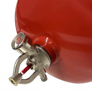 Der Behälter steht unter konstantem Druck und kann nach dem Gebrauch wieder aufgefüllt werden. Der Druck des Feuerlöschers ist auf dem Manometer, das auf dem Ventil installiert ist, sichtbar.