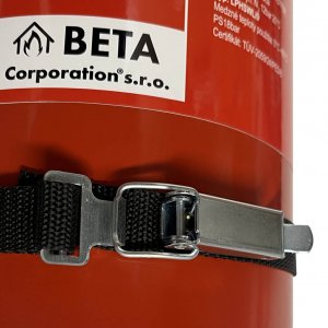 Die Schaumlöschanlage wird mit einer robusten Stahlhalterung geliefert. Die Halterung enthält Gurte zur Befestigung des Feuerlöschers.