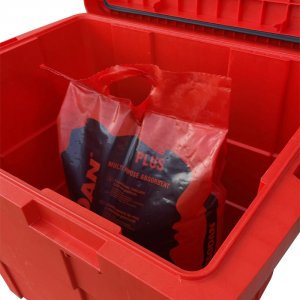 Diese rote Box aus hochwertigem Polypropylen ist die ideale Lösung für die Lagerung von Schüttgut wie Sorptionsmittel, Absorptionsmittel, Sand, Streusalz. Hochwertige Verarbeitung, Beständigkeit gegen mechanische Beschädigung, UV-Strahlung, ChemikalienEs ist die ideale Lösung für den industriellen, kommunalen und privaten Gebrauch. Dank der speziellen Versiegelung im Inneren der Box ist der Inhalt vor Feuchtigkeit, Staub und widrigen Wetterbedingungen geschützt. Herkömmliche lose Sorptionsmittel sind in Säcken verpackt, die leicht platzen und oft unpraktisch zu handhaben sind. Diese multifunktionale Box bietet eine saubere und organisierte Lösung, die das Risiko des Verschüttens ausschließt und die Anwendung des Materials bei Bedarf erleichtert. Die Boxen können übereinander gestapelt werden und bieten so logistische Flexibilität.