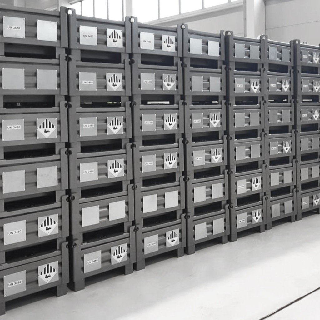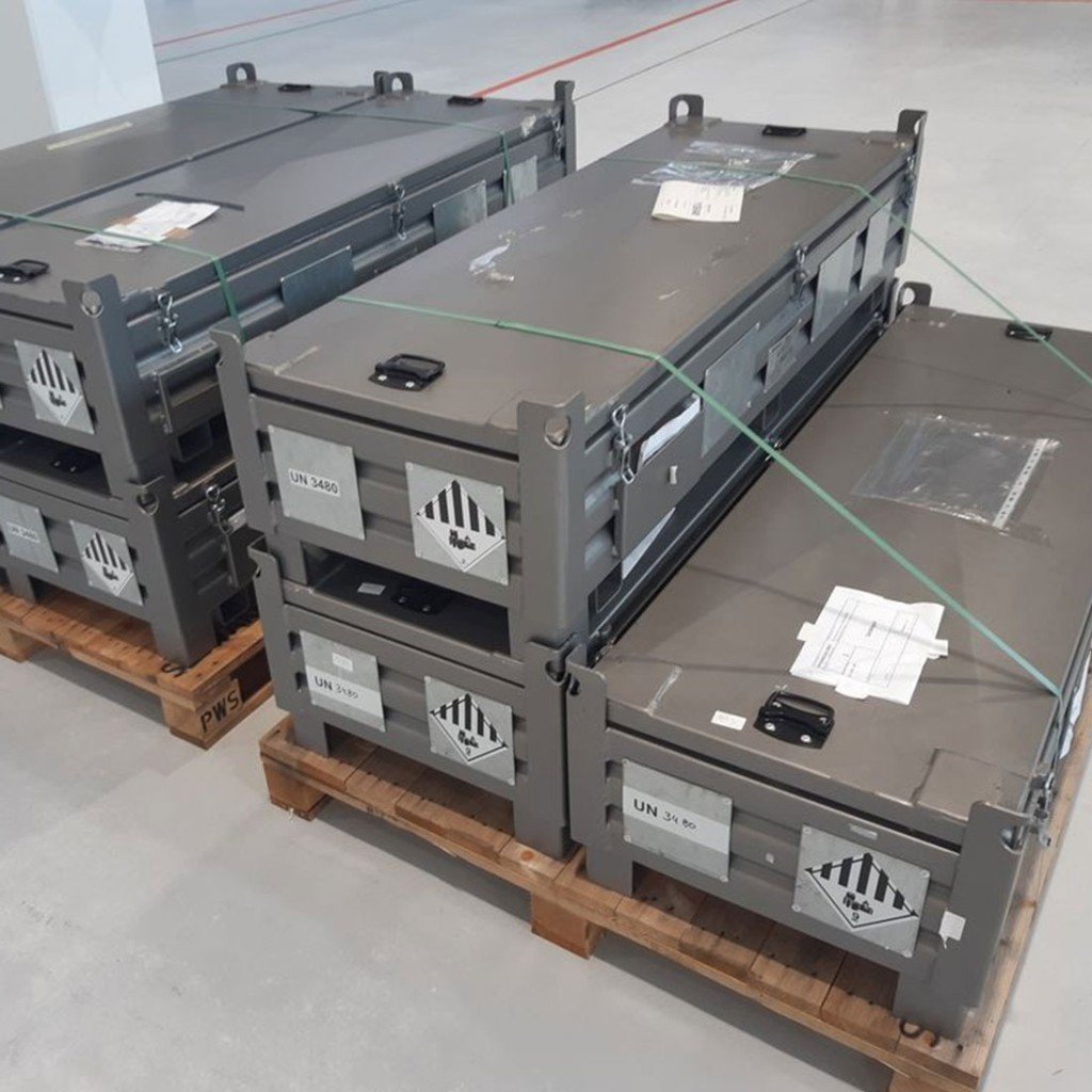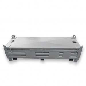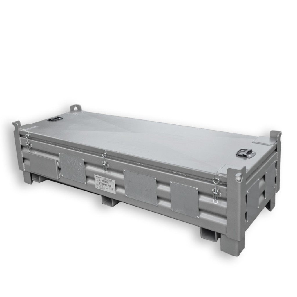 This sturdy shipping box is designed specifically for the safe transport and storage of automotive lithium batteries, which fall under the ADR group of dangerous goods. With its UN code 4A/Y and classification in packaging group II, it meets all requirements for the transport of new, used and damaged batteries. The construction is welded from durable steel plate and is complemented by flame-retardant seals, numerous safety features and practical details that simplify handling and daily operation. The box can be safely lifted by forklift and crane and its removable lid allows easy and quick access to the stored battery. The ideal solution for service stations, manufacturing plants, logistics or recycling plants working with lithium batteries.