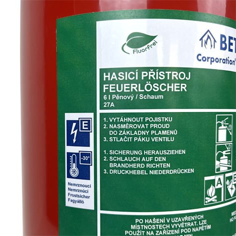 Szabványos fali konzollal és műanyag talppal érkezik. Az F6 BETA Weco haboltó készüléket vízzel és fluormentes oltóanyaggal töltik meg (oltóanyag keverék vészhelyzeti alkalmazásokhoz, A - szilárd anyagok, B - folyadékok oltására. Fluormentes haboltó készülék, ezért környezetbarát. Ez a tűzoltó készülék ideális kombináció az optimális oltási teljesítményhez, miközben környezetbarát. A tűzoltó készülék állandó nyomás alatt áll, és használat után újratölthető. A tűzoltó készülék nyomása a szelepre szerelt nyomásmérőn látható. Az F6 BETA Weco haboltó készülék 27A besorolású, 183B oltóanyag-kapacitású, 6 literes haboltó készülék. Az F6 BETA Weco tűzoltó készülék alkalmas alkalmazási területei : szilárd anyagok, gyúlékony folyadékok.