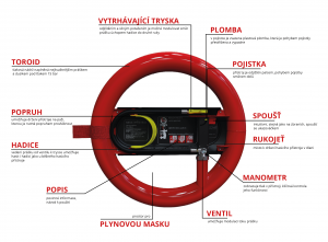 Plná hmotnost hasicího přístroje je 12,65 kg. Hasicí schopnost – 34A 183 B,C