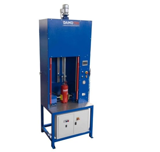 Stroj EL100 je určen k šroubování a odšroubování ventilů na přenosných hasicích přístrojích a k jejich natlakování dusíkem. Po umístění hasicího přístroje do stroje a manuálním zasunutí příslušného rozhraní (pro šroubování nebo natlakování) na ventil probíhá provoz zcela automaticky. Řídicí logika vede obsluhu krok za krokem při potvrzování operací šroubování a natlakování, čímž zajišťuje, že celý proces je rychlý, automatizovaný a zároveň bezpečný. Utahovací moment je řízen digitálním momentovým čidlem s přesností ±0,5 %. Stroj je navržen pro integraci do systémů Industry 4.0, včetně vstupních a výstupních datových rozhraní a možnosti vzdálené asistence. Zařízení také umožňuje natlakování pojízdných hasicích přístrojů, a to stejnou metodou jako u přenosných hasicích přístrojů.