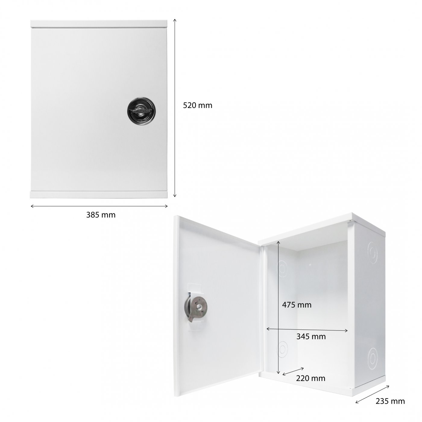 možnost instalace na stěnu pomocí standardního kotvení; skříň lze upevnit v interiéru i exteriéru