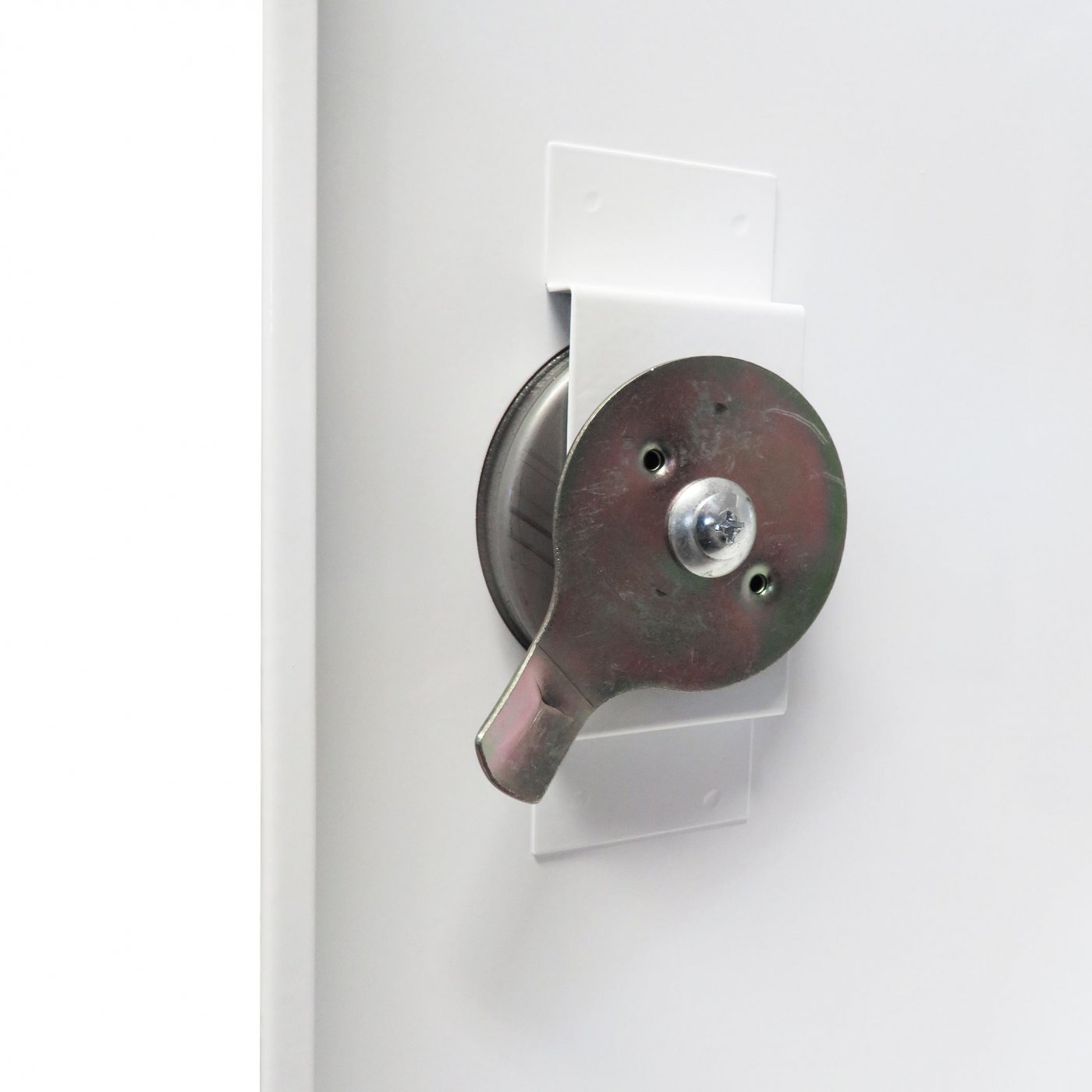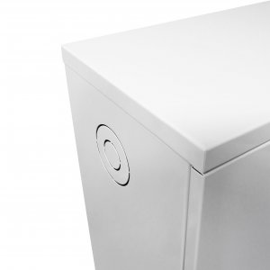 Eurozámek umožňuje rychlé a zároveň bezpečné otevírání – skříň je chráněna proti neoprávněné manipulaci, ale v případě nouze poskytuje okamžitý přístup k uloženému vybavení. Součástí hydrantové skříně jsou praktické průchodky, které umožňují napojení potrubí bez nutnosti narušení plechu. Díky tomu se skříň přizpůsobí různým stavebním podmínkám – potrubí může být vedeno z libovolné strany podle konkrétní instalace.