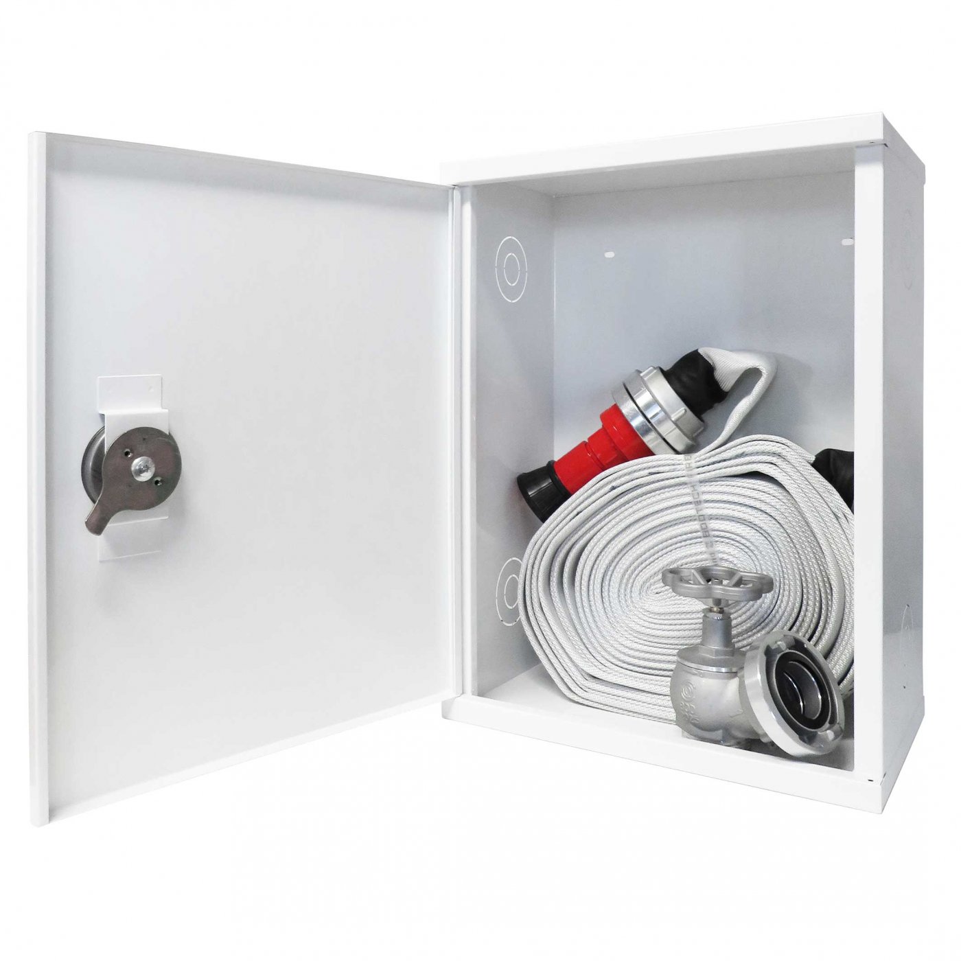 Hydrantová skříň určená pro zploštitelnou hadicí je velice účinným hasicím prostředkem se stálou dodávkou vody. Hydrantový systém je připraven k okamžitému použití v případě požáru, kde obsluhu hadicového systému zajišťuje jedna osoba. Hydrantový systém je vyroben dle norem ČSN EN: 14384:2006 a ČSN EN: 1074-6:2009. Skříň je vyrobena z vysoce kvalitní oceli s povrchovou úpravou odolnou proti mechanickému poškození i povětrnostním vlivům. Díky neutrální bílé barvě se skříň elegantně začlení do interiéru, aniž by rušila okolní prostředí, a přitom zůstává dobře viditelná a snadno přístupná v případě nouze.