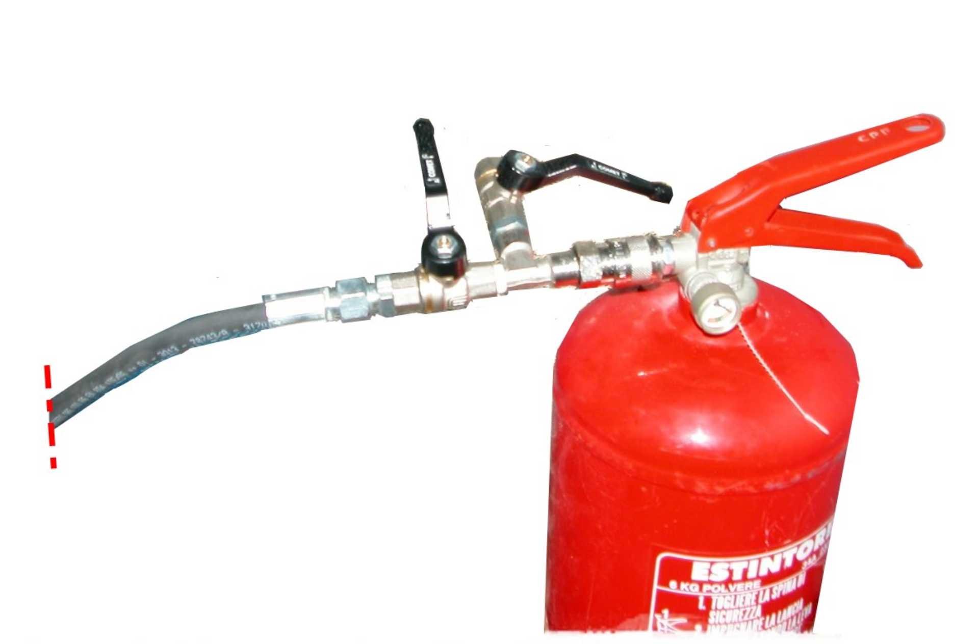 Souprava pro práškové hasicí přístroje pod stálým tlakem: reduktor tlaku dusíku s maximálním výstupním tlakem 18 barů, flexibilní hadice (délka 2 m), rychlospojka s uzavíracím a odvzdušňovacím ventilem pro bezpečný provoz.