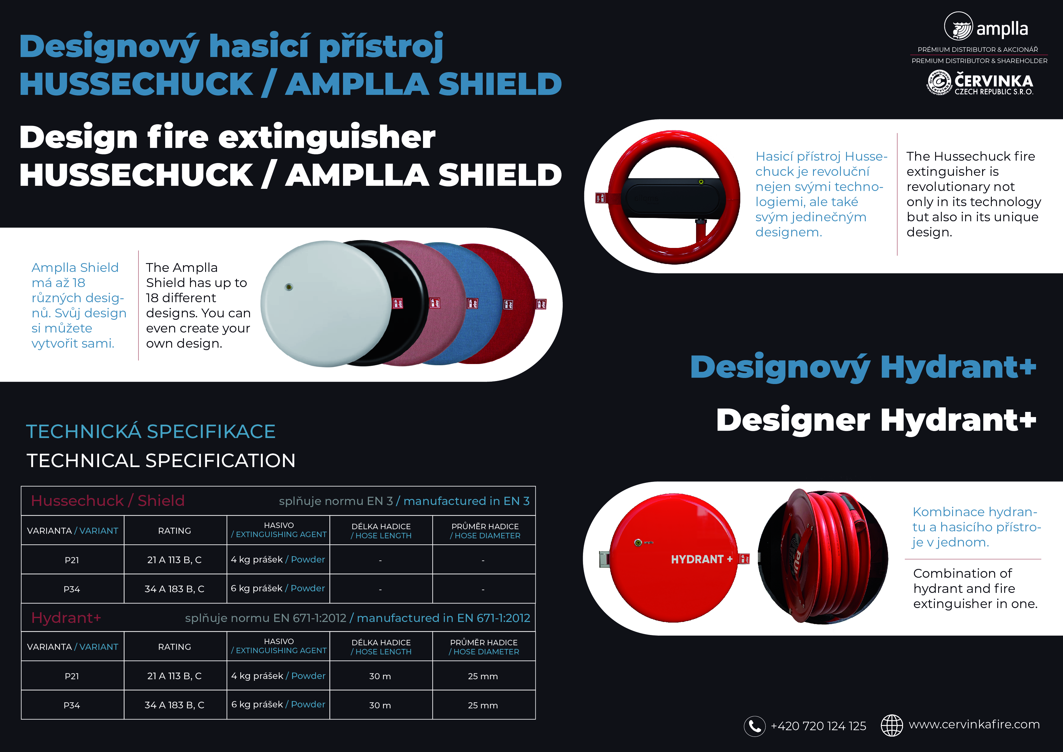 AMPLLA HYDRANT+ ist ein einzigartiges Konzept, das zwei Geräte in einem vereint. Es ist ein voll funktionsfähiger Hydrant, bestehend aus einer Schlauchtrommel mit Düseund unserem Feuerlöscher SHIELD P21 (Enthält Furex ABC Spezial, Ammoniumdihydrogenphosphat. Er verwendet das hochwertigste Pulverlöschmittel und löscht mit 4 kg Pulver das gleiche Feuer wie ein 6-kg-Feuerlöscher). Alles verpackt in einem einzigartigen Design.