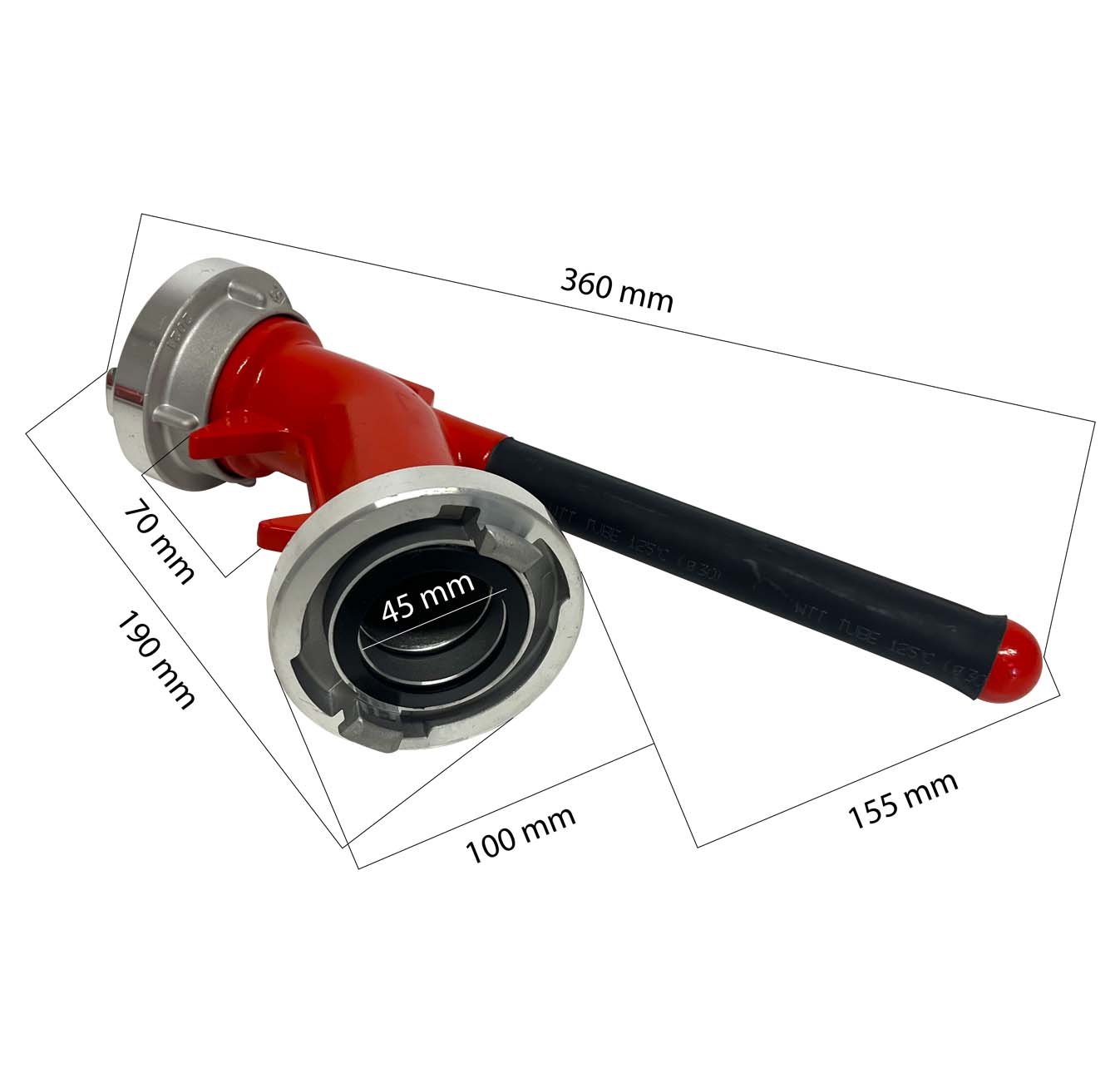 The C52 Elbow Coupling is used to facilitate the handling of hose lines. Its main purpose is to reduce jet line recoil and overall physical stress, helping to reduce pressure on the operator's back, hands and arms.