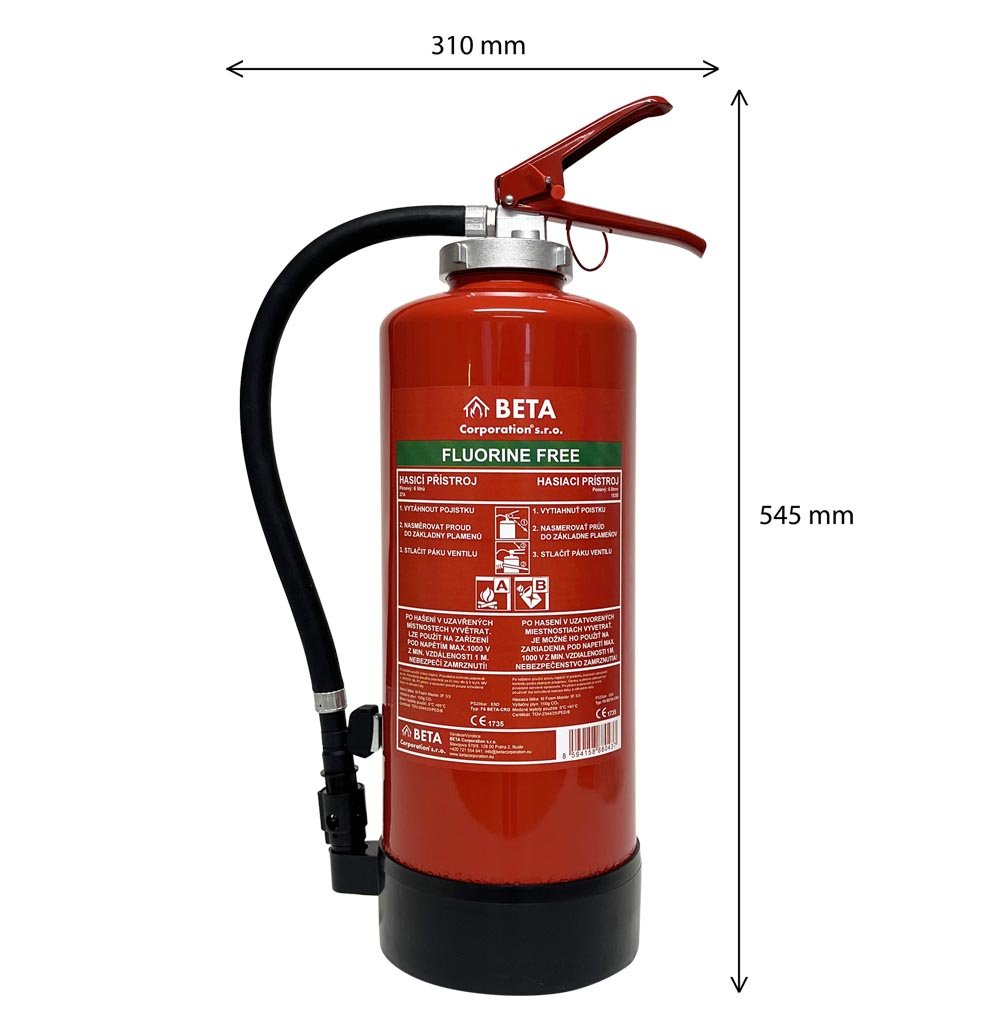 FLUORINE-FREE FOAM FIRE EXTINGUISHER WITH PRESSURE CARTRIDGE 6 L F6 BETA-CRG