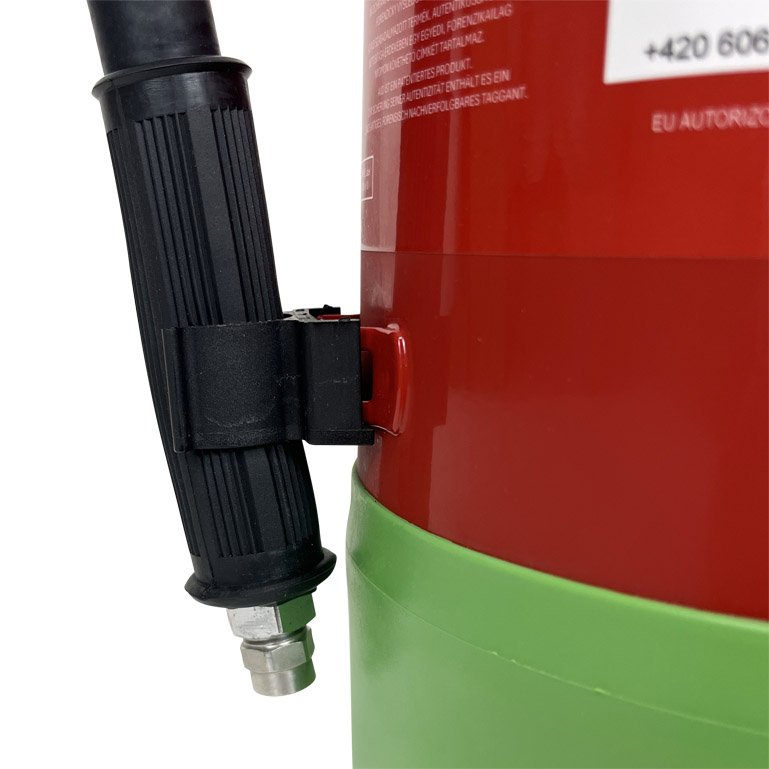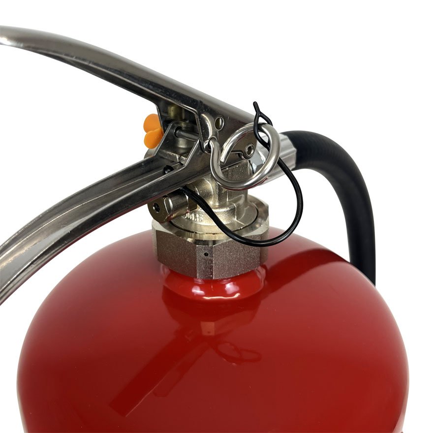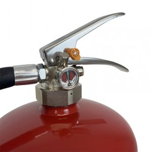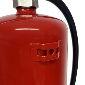 It can also be used to extinguish electrical equipment under voltage up to 1000 V from a minimum distance of 1 m. The device is under constant pressure and is refillable after use. The pressure of the extinguisher is visible on a pressure gauge installed on the valve.