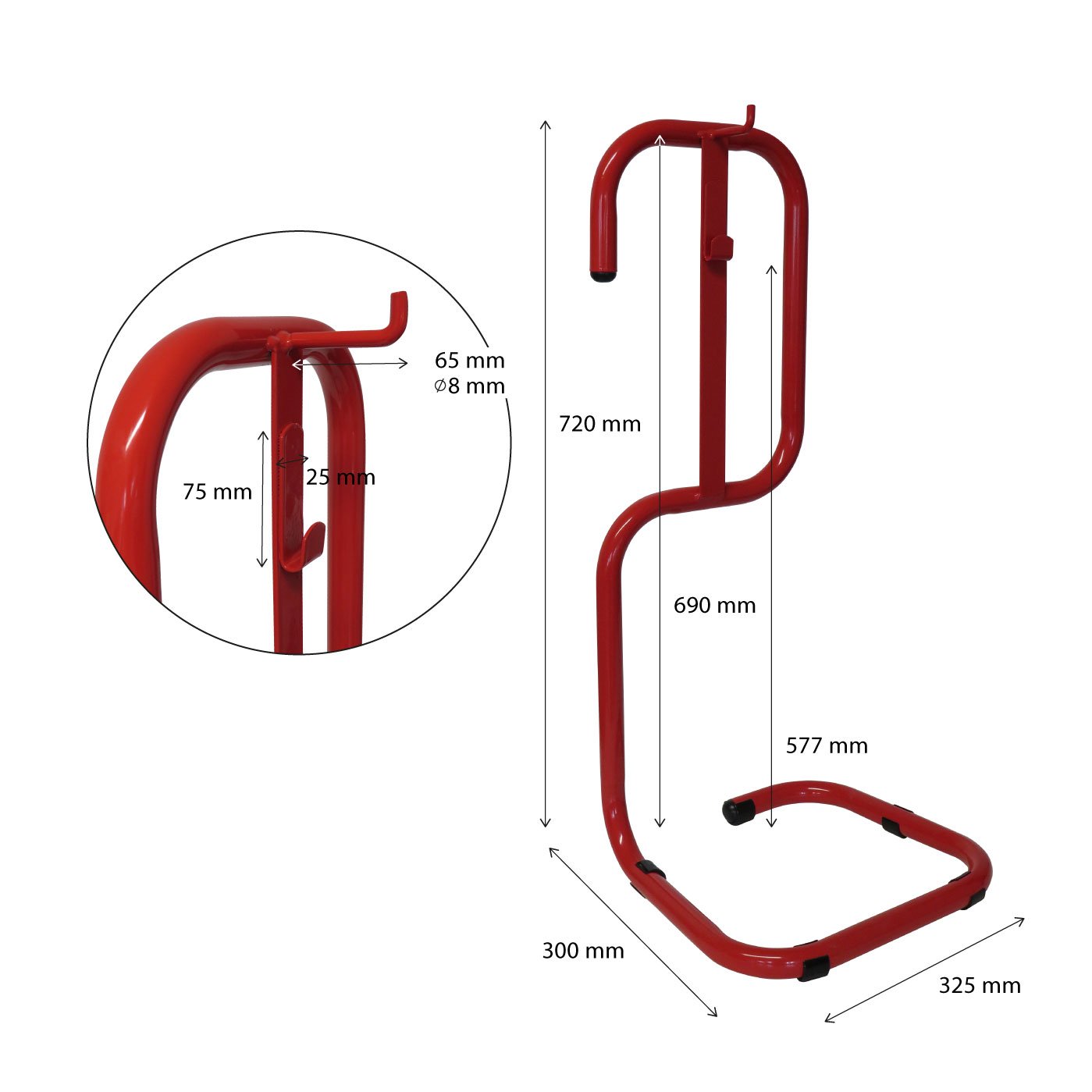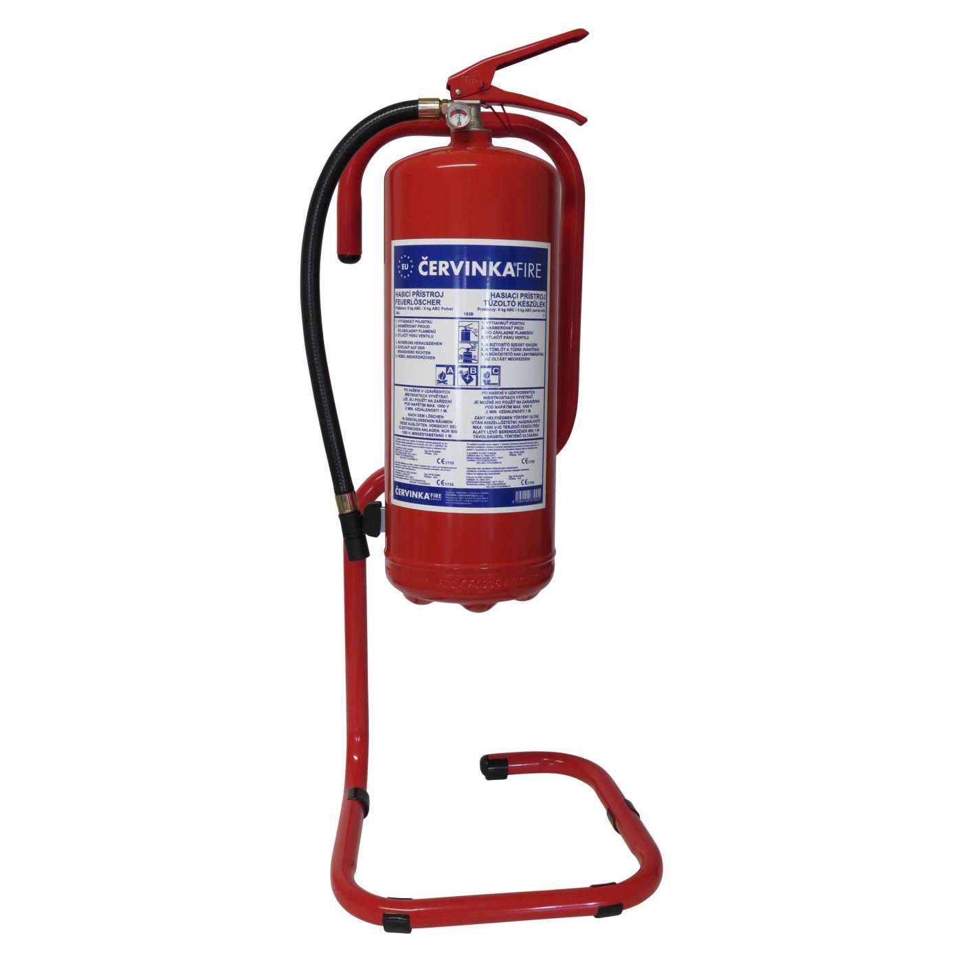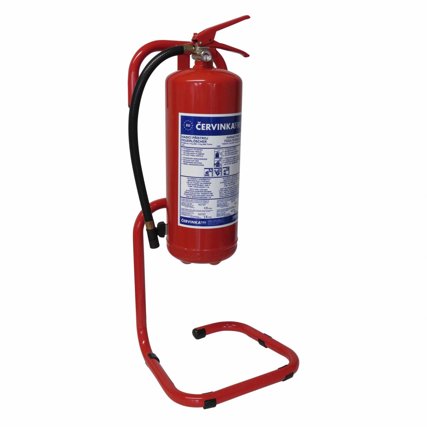 A tűzoltó készülék állványa a tűzoltó készülék elhelyezésére szolgál olyan helyeken, ahol a falba fúrás nem kívánatos vagy nem lehetséges, vagy ahol a tűzoltó készüléket mozgatni kell. Alkalmas beltéri és kültéri alkalmazásokhoz. Két kampóval van ellátva a tűzoltókészülék könnyű kezelése érdekében. Alkalmas minden olyan hordozható tűzoltó készülékhez, amelynek palackja a szelepen hátsó szemmel vagy szemmel van ellátva, amely szükség szerint az egyik kampóra akasztható. Az állvány biztosítja a könnyű és biztonságos hozzáférést a tűzoltókészülékhez nehézségek esetén.