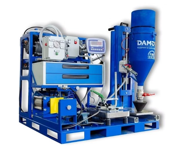 > Jednotka pro přečerpávání hasicího prášku, na posuvném držáku – model TOTEM M nebo TOTEM TS